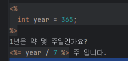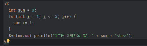 <% ...%> 블록을 사용해서 자바 코드를 작성한다.